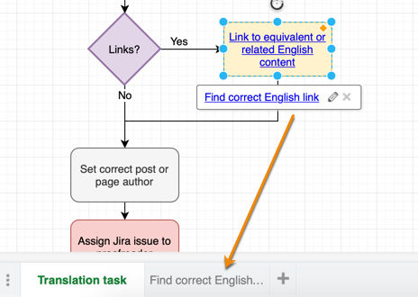 让我们来看一个简单的流程图示例。我最近需要记录为新的翻译团队成员翻译单个博客帖子的过程–使用流程图比用文本和屏幕截图填充页面要容易得多。
