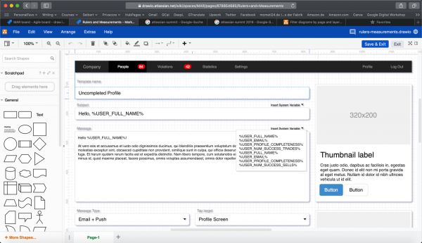 这是一个微妙而有用的补充-您可能没有注意到我们在绘图画布周围添加了标尺。移动形状时,您会看到蓝色标尺出现在每个标尺上,显示正在移动的形状的外边缘。使用标尺和这些准则可以更轻松地将形状对齐。